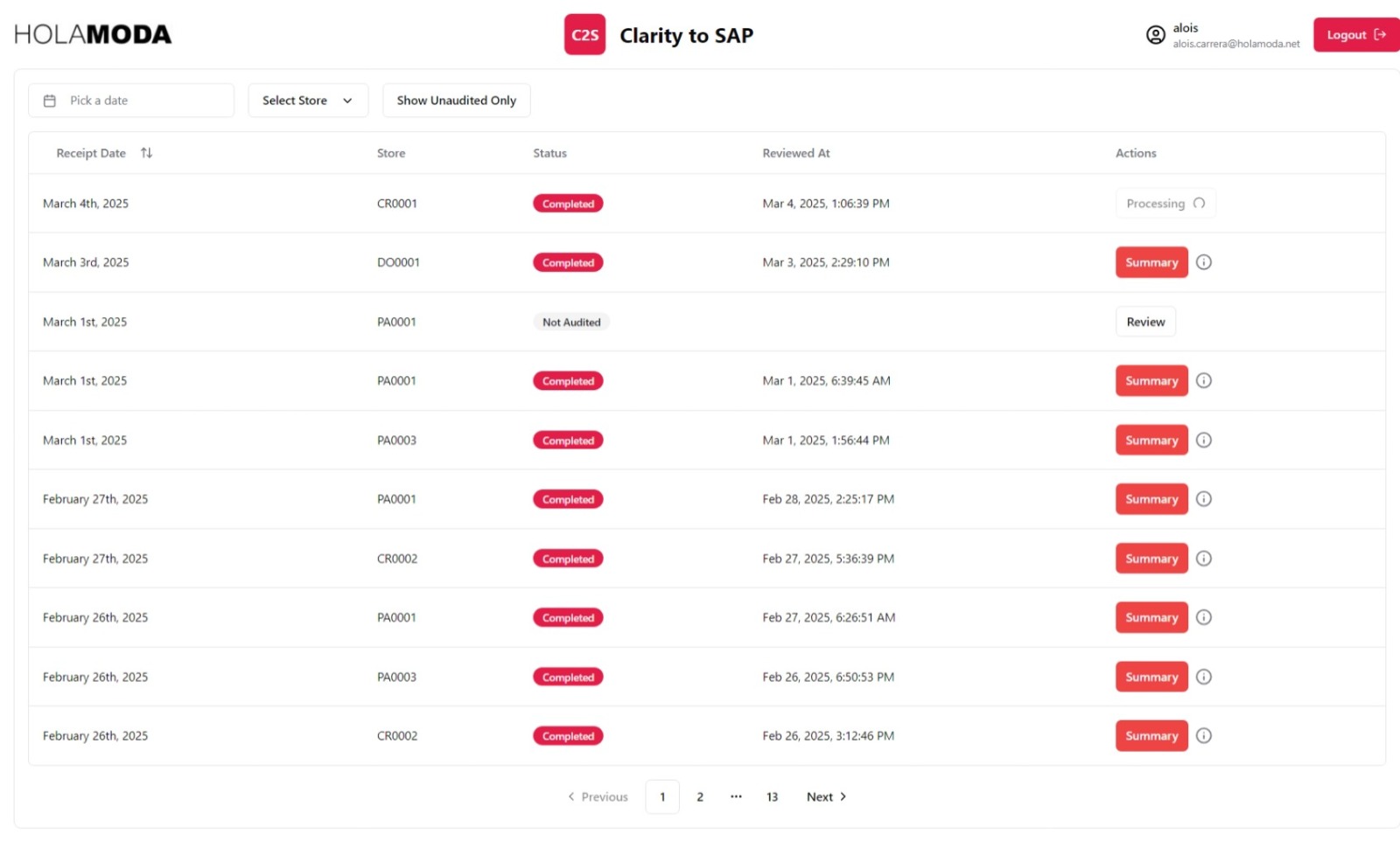- • Store reception middleware to audit all the merchandise in the boxes before sending the info to the ERP